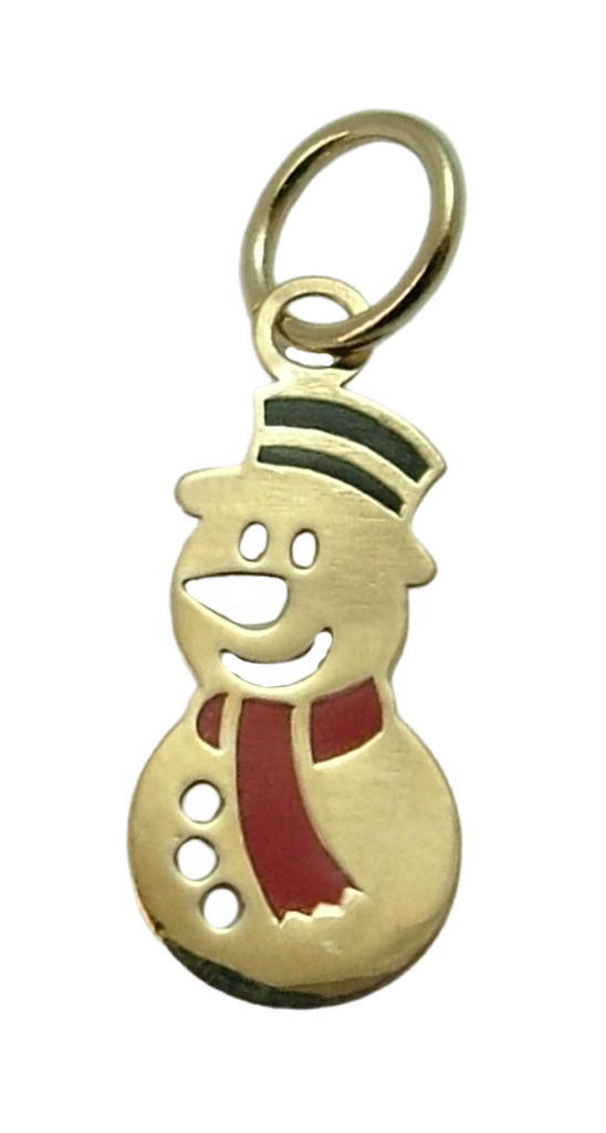 A small flat c2000 9ct gold and enamel snowman charm, a very sweet modern piece. Please note this is a very thin and light charm.