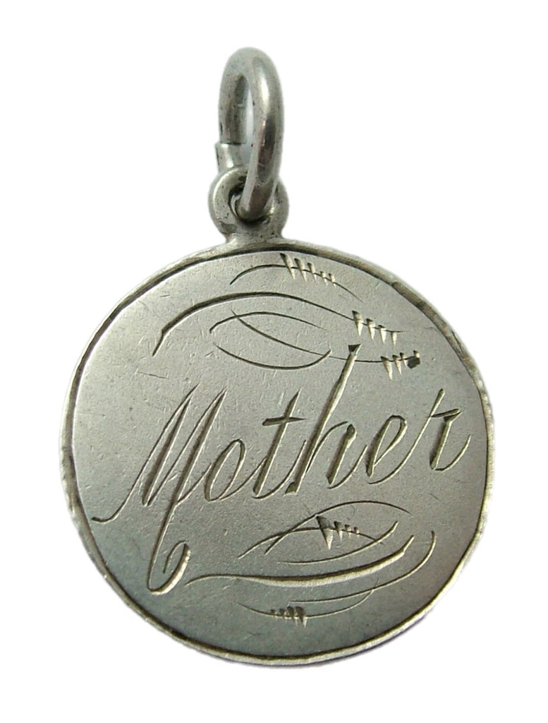 Antique Victorian Silver Engraved Love Token Coin Charm MOTHER