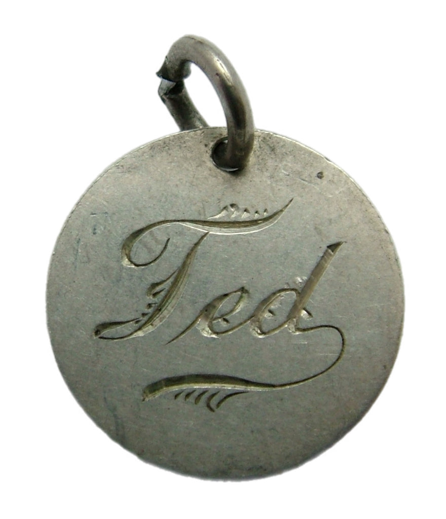 Antique Victorian Silver Engraved Love Token Coin Charm “TED”