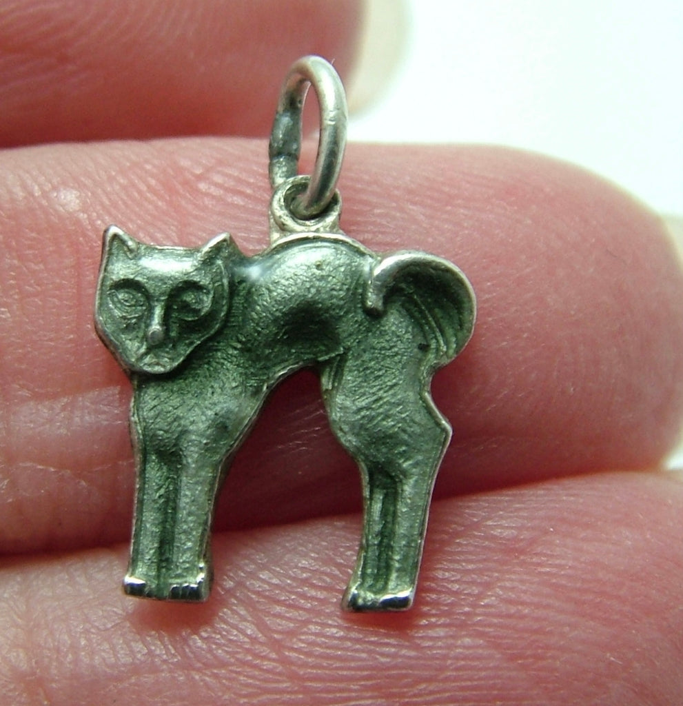 A small vintage 1950's European silver and grey enamel charm of a cat, a lovely piece.