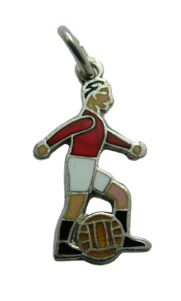 A vintage 1950's European silver and red enamel footballer charm, a very nicely detailed piece in Manchester United colours.