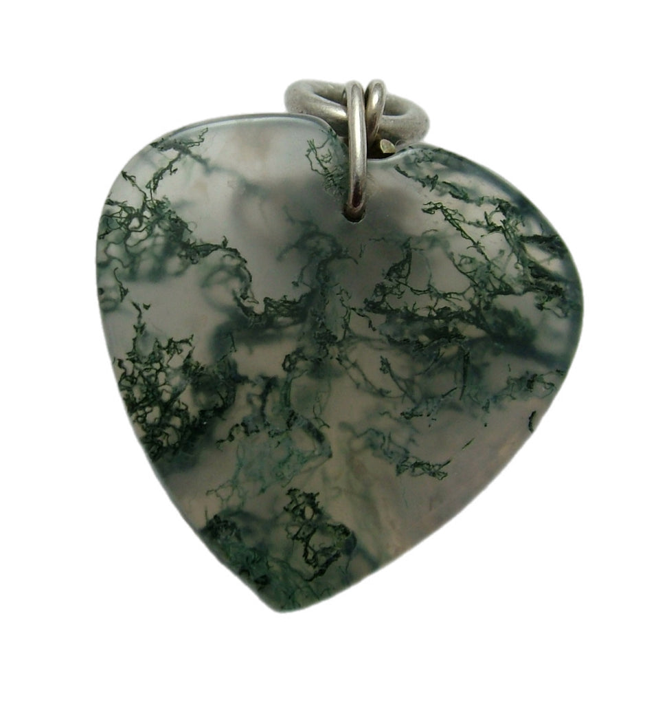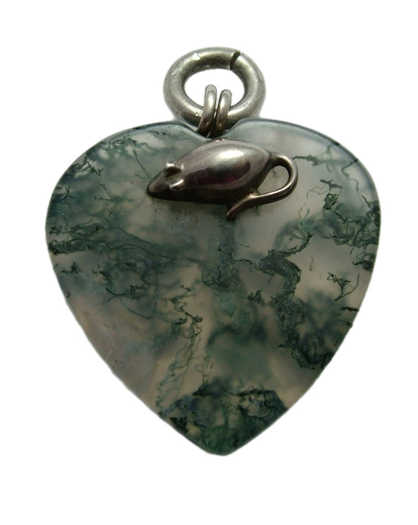A unusual vintage 1960’s/70's carved moss agate heart charm with an unusual silver suspension bale that incorporates a little mouse, a lovely piece.