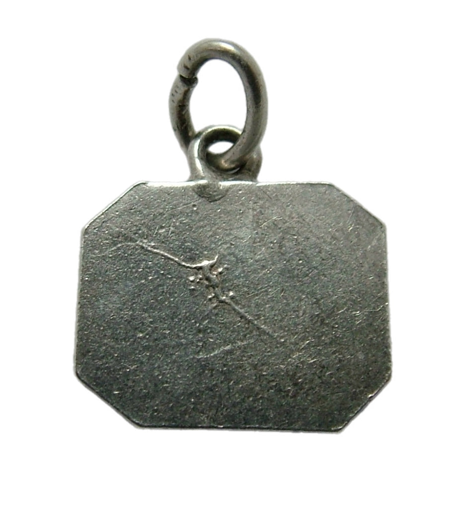 It measures 12mm (1/2 an inch) by 11mm (7/16ths of an inch) and weighs 0.9 grammes. Unmarked but tested as at least 800 grade silver and in very good condition just slightly tarnished.