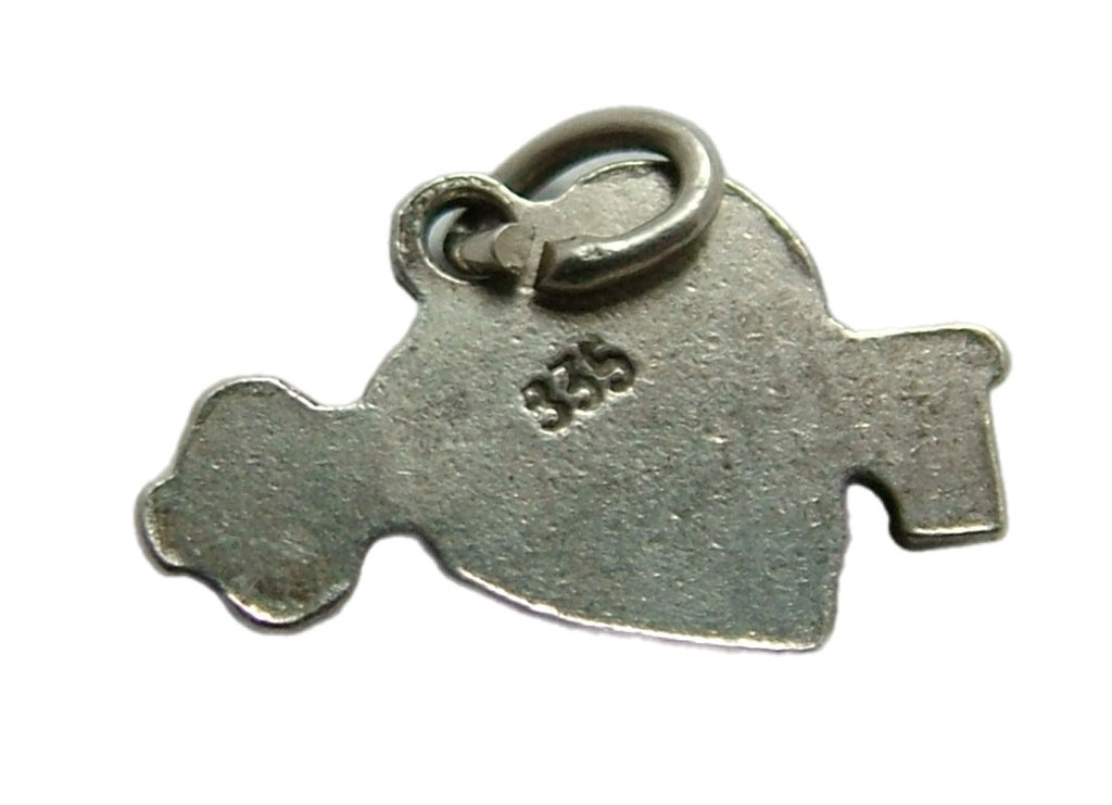 A small vintage 1950's European silver and red enamel heart charm with a key through it, “The Key to my Heart”, a lovely piece.